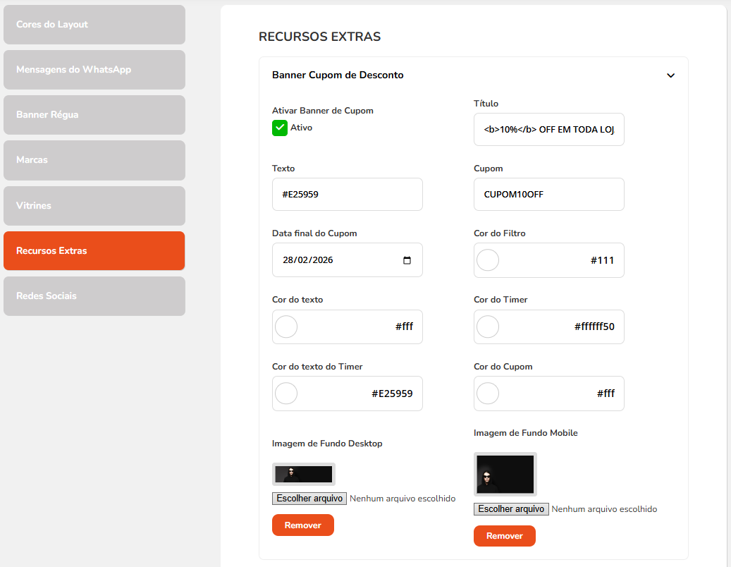 Lembrando que o exemplo acima é o cadastro apenas do banner Extra 7. Deve-se cadastrar o banner Extra 8 seguindo o mesmo