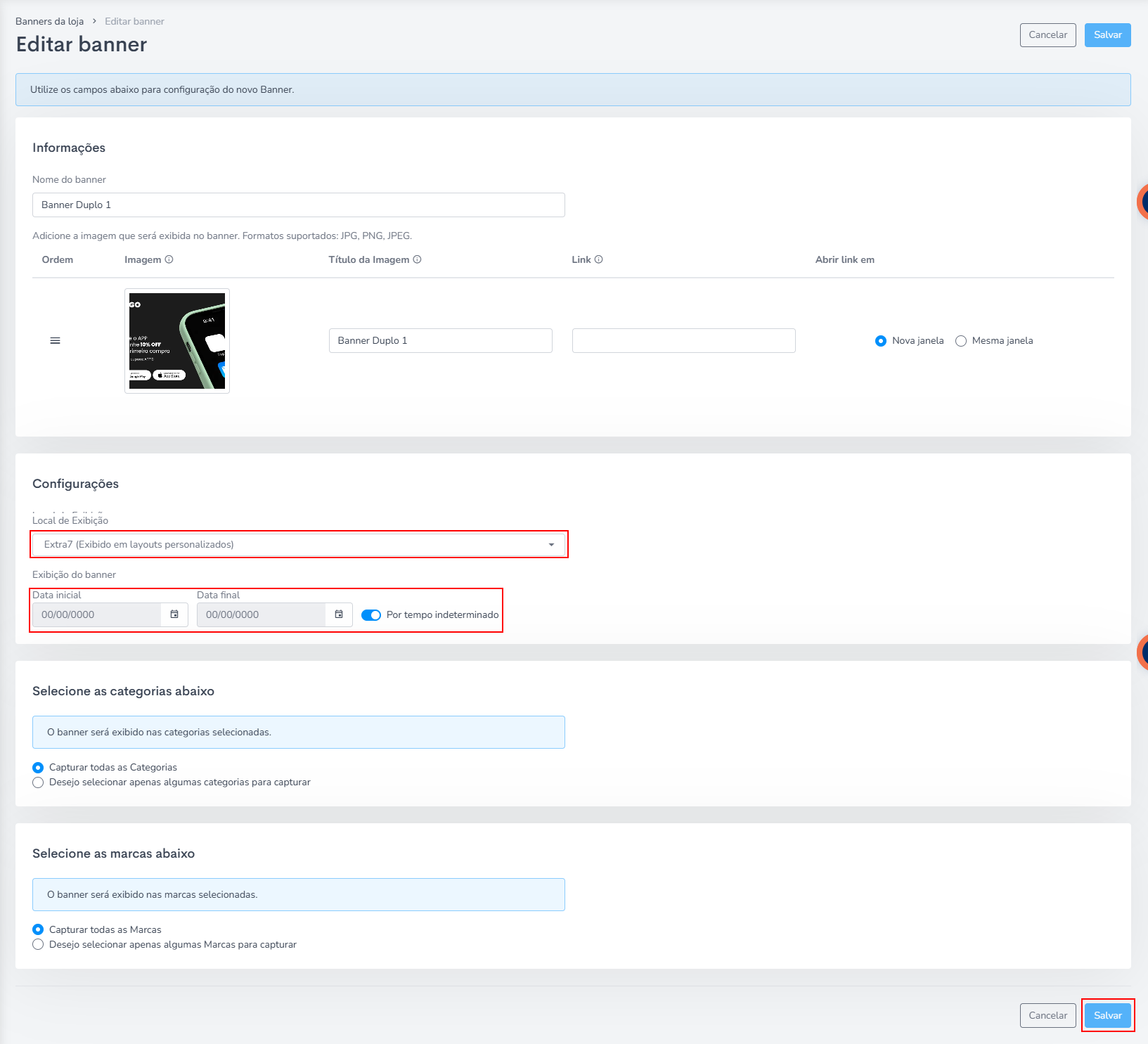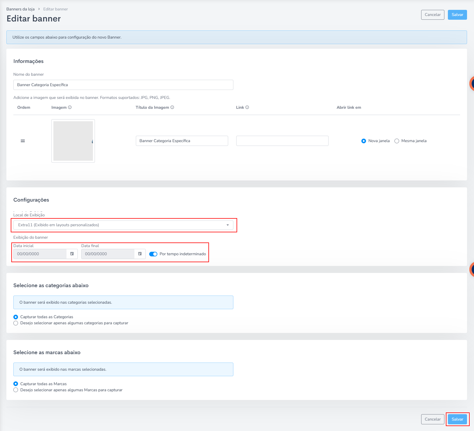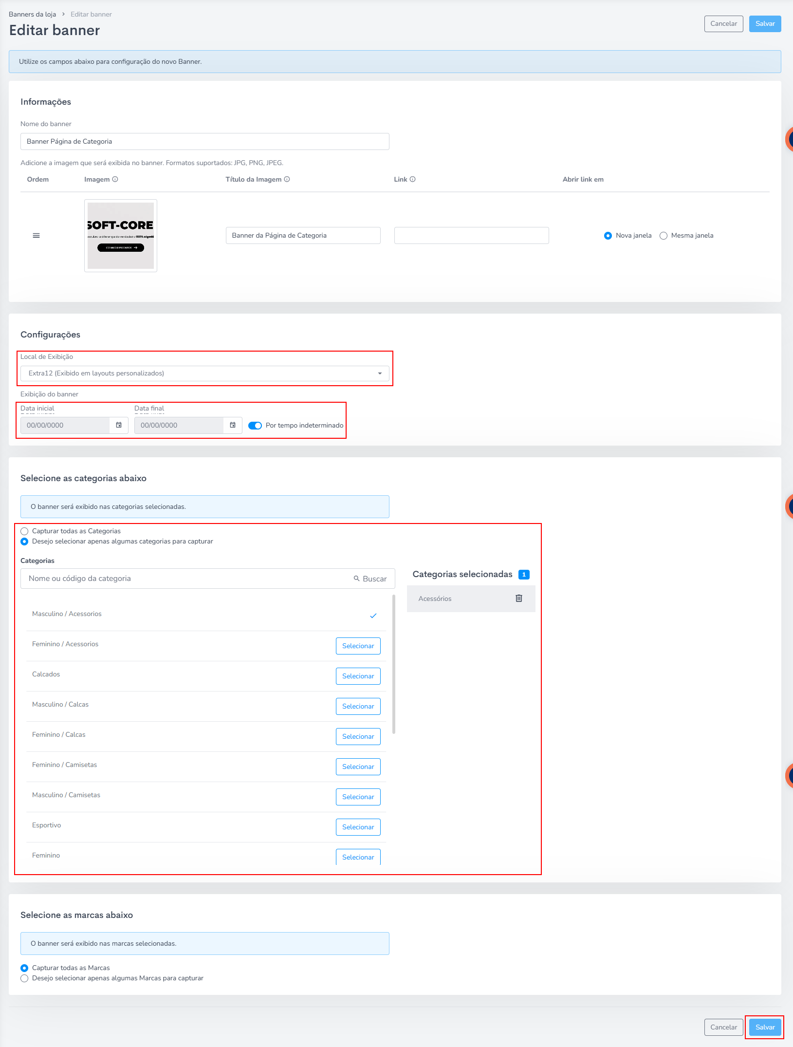 Obs.: Você pode escolher qual categoria em expecífico aquele banner vai aparecer, na parte de Selecione as categorias abaixo.