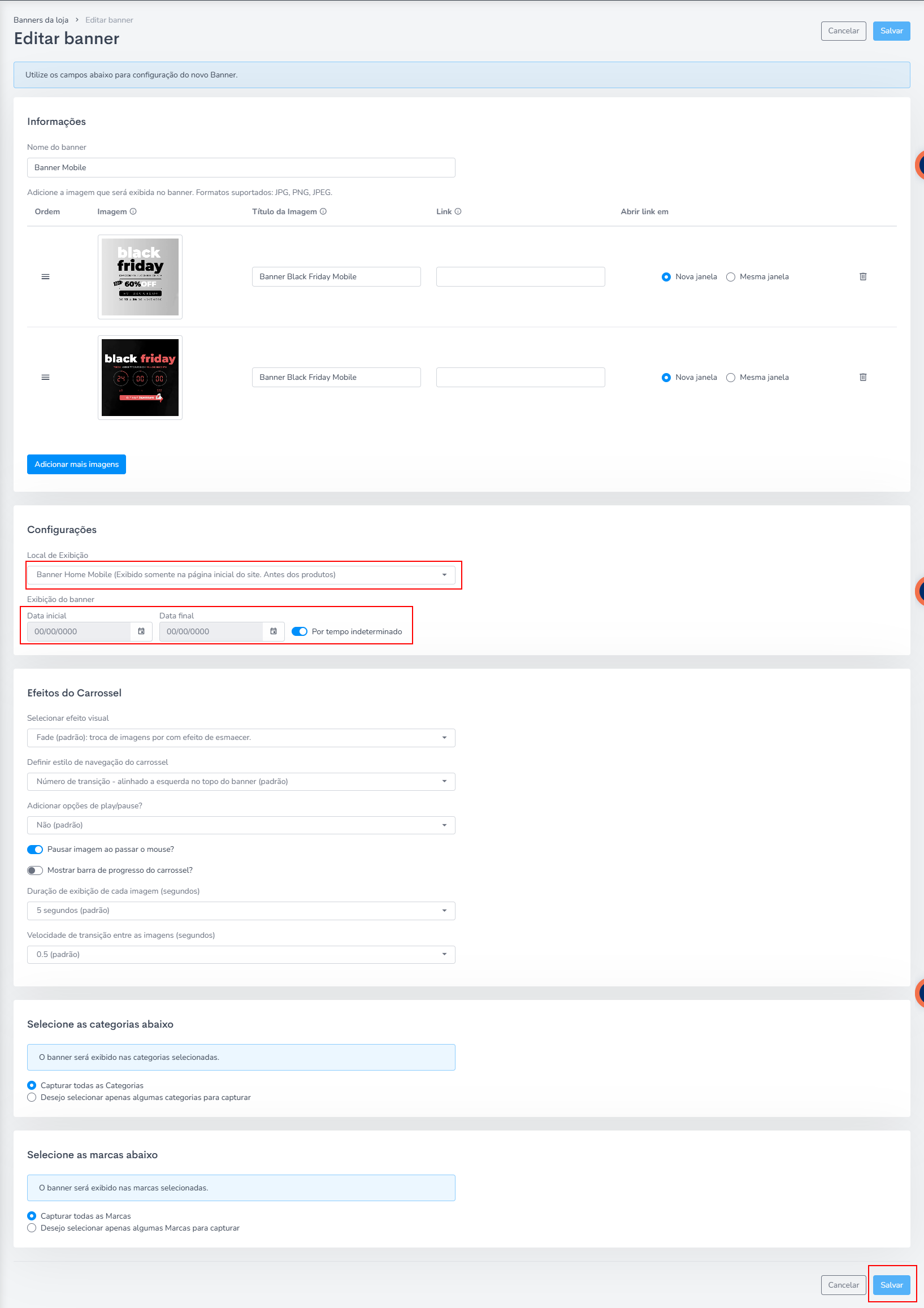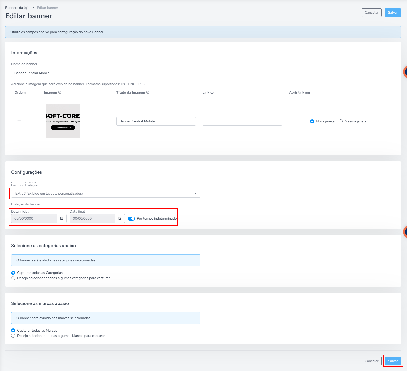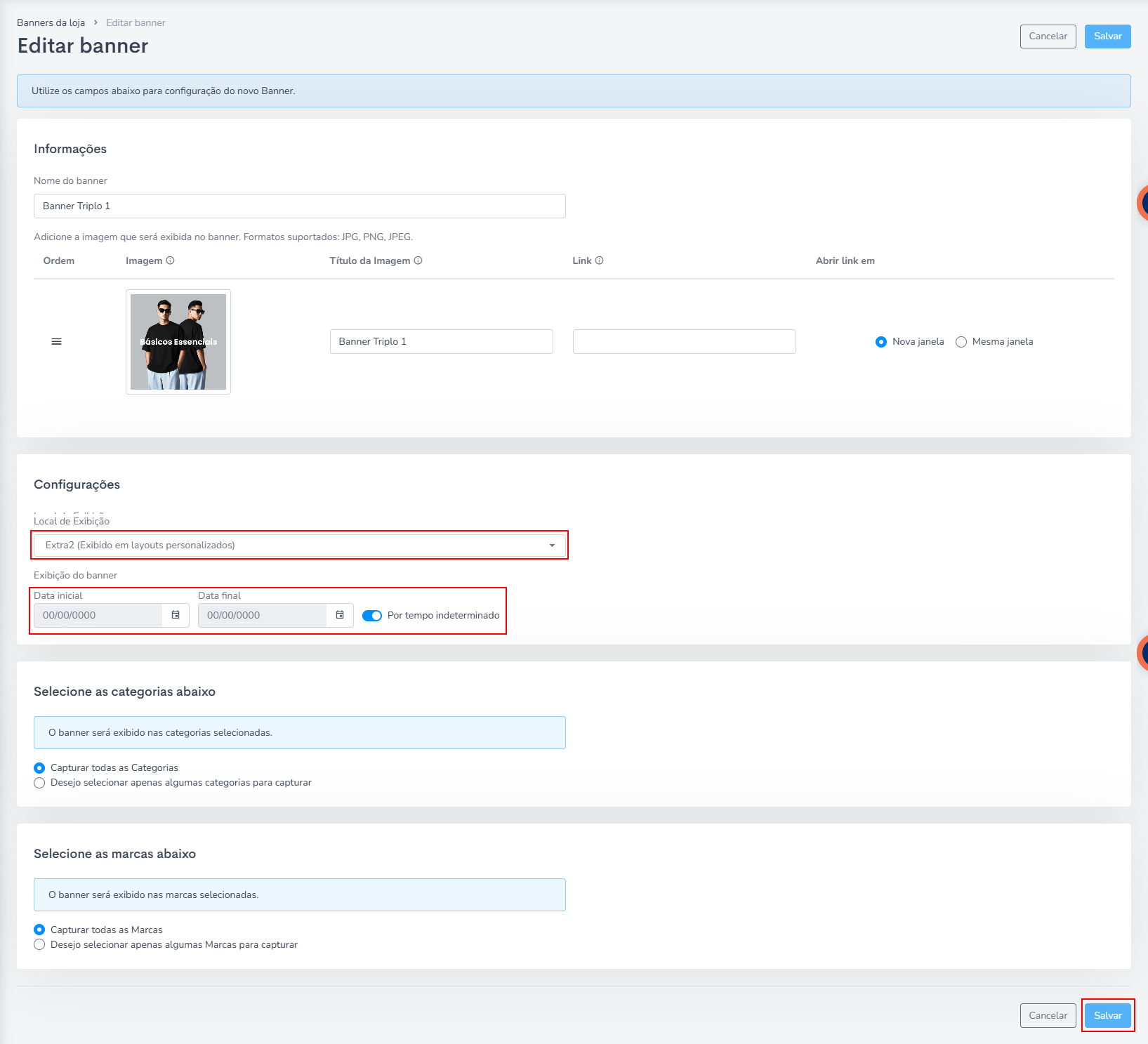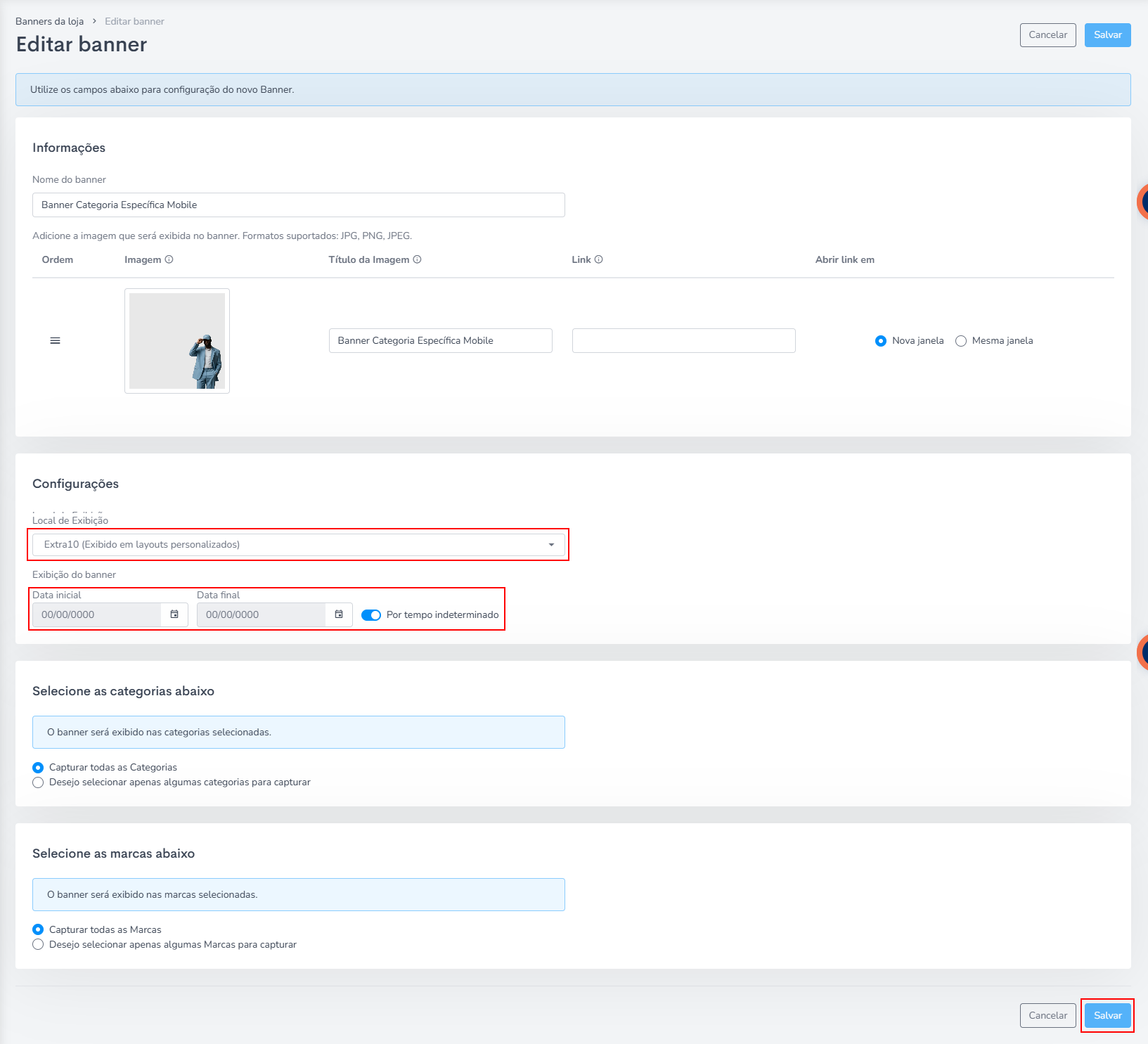 Obs.: Você pode escolher qual categoria em expecífico aquele banner vai aparecer, na parte de Selecione as categorias abaixo.