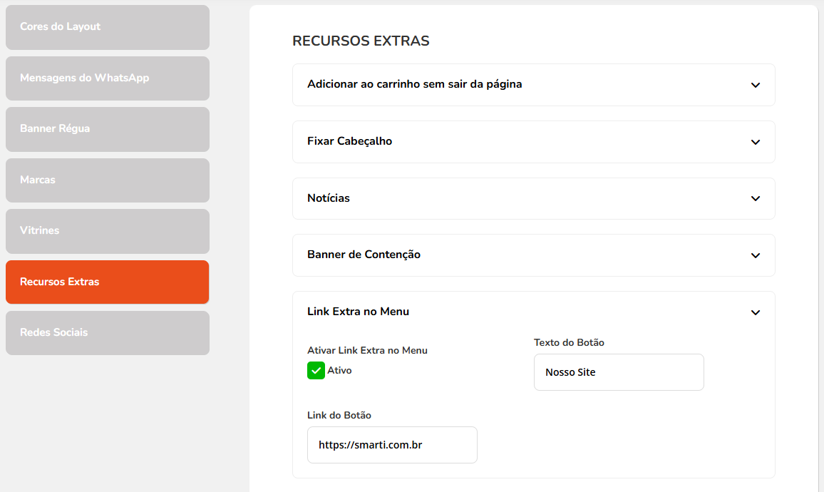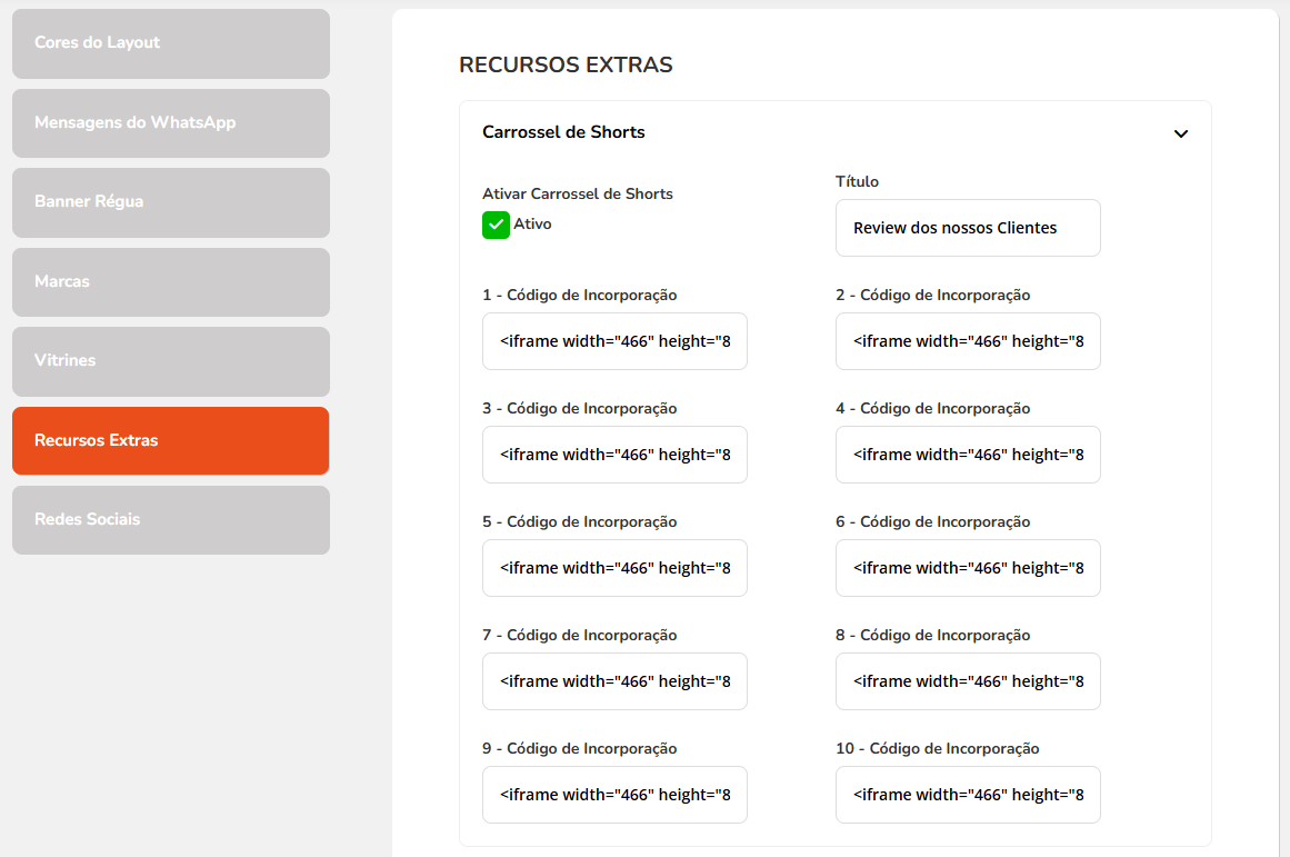 e o Local de exibição: Extra 2, Extra 3 e Extra 4, depois clique em Salvar.