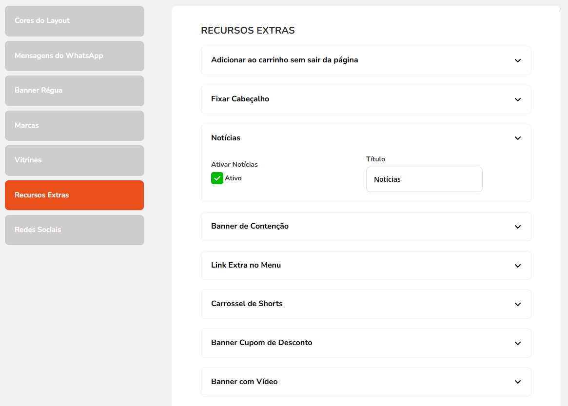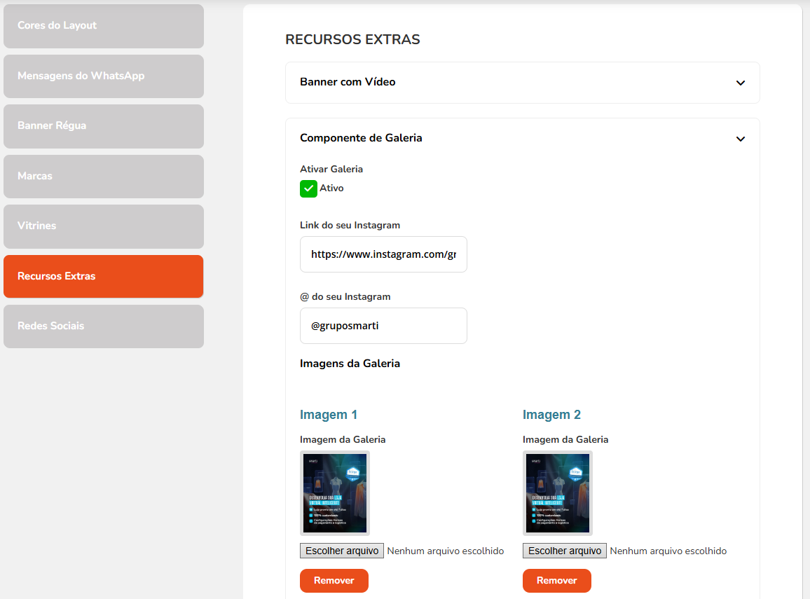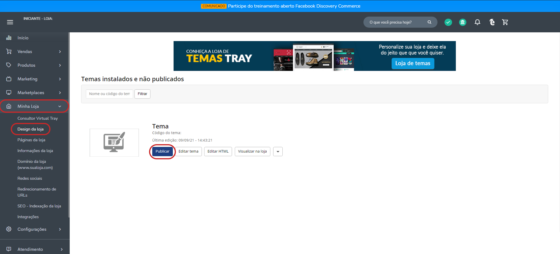 Para editar os banners, basta acessar o painel e seguir o caminho Marketing > Banners da loja.